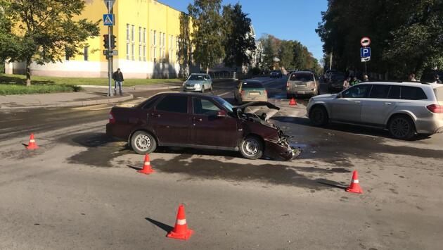 «Лада Приора» влетела во внедорожник на ул. Чехова в Вологде