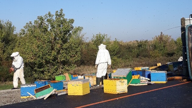 Грузовик с пчелиными ульями перевернулся на трассе М4 «Дон» в Адыгейске. Об этом сообщили в паблике «Горячий Ключ Онлайн. Краснодарский край» в социальной сети «ВКонтакте». ДТП случилось утром 20 сентября. Тягач перевернулся на бок. Из-за этого из кузова на обочину дороги выпали улья. Из ящиков вылетел рой насекомых. На место ЧП приехали пчеловоды в специальных костюмах. Источник фото: «ВКонтакте» По предварительным данным, никто не пострадал.