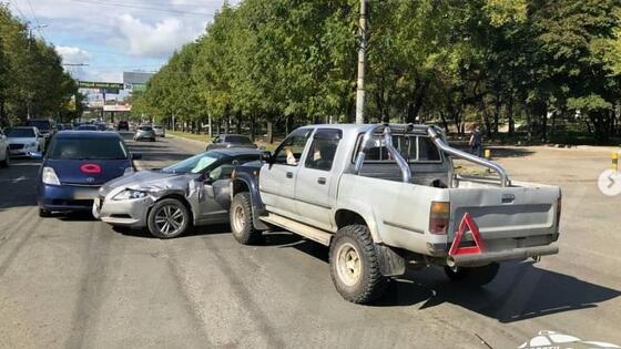 В воскресенье, 30 сентября, во Владивостоке на улице Русской произошла авария в которой пострадало три автомобиля, сообщает PRIMPRESS со ссылкой на «Экипажи-ДПС». По словам очевидцев, автомобиль Honda CR-Z выезжал с улице Давыдова и не уступил дорогу Toyota Hilux. В результате внедорожник ударил Honda и та отлетела в Toyota Prius. В результате аварии две полосы движения оказались заблокированы. На дороге образовался затор.