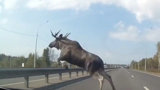 Выскочивший на трассу лось едва не устроил ДТП под Ярославлем. Видео