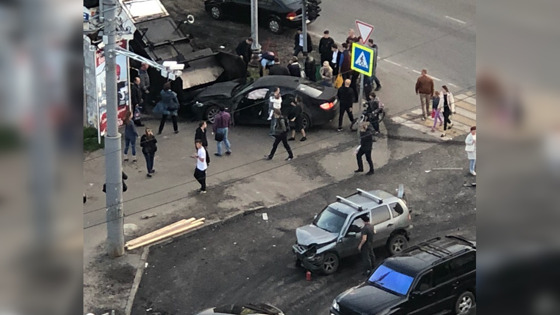 Сегодня около 17.30 на перекрёстке проспекта Ломоносова и улицы Воскресенской иномарка вылетела на тротуар и сбила двух молодых людей. Предположительно, это произошло после столкновения с автомобилем, который двигался по Воскресенской. По рассказам очевидцев, чёрный BMW двигался по Ломоносова и на перекрёстке с улицей Воскресенской столкнулся с Chevrolet Niva. Было ли столкновение, выясняет ГИБДД. От удара иномарку вынесло на тротуар. В это время там шли несколько молодых людей. Водитель BMW сбил двоих. Один попал в ковш машины, предназначенной для дорожных работ. Он выбрался оттуда сам. Второй остался на тротуаре. Встать он не смог, но был в сознании. Оба получили травмы и были госпитализированы. Их жизни ничего не угрожает. Второй автомобиль после предполагаемого столкновения остановился на проезжей части. Судя по фотографиям и словам очевидцев, у Chevrolet Niva помят бок и спущены шины. Водитель получил травмы. Пострадали также водитель и пассажирка BMW. Они не были госпитализированы. Обстоятельства происшествия выясняет ГИБДД.