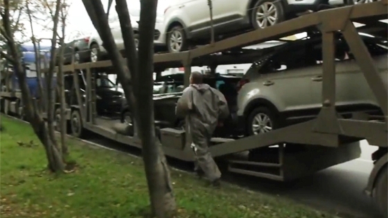 В 13.50 в редакцию «Новостей ОТС» поступил звонок от Юлии Жориной, одной из обманутых клиентов компании Galaxy Motors. Она получила на руки измененный договор купли-продажи на автомобиль Ravon Nexia. Женщина сообщила, что в эти минуты из автосалона неизвестные вывозят машины. Журналисты ОТС сразу обратились в полицию и даже попытались выяснить, куда идет груз. Водители автовозов, неоднократно пересекая перекрестки на красный свет, направились в сторону улицы Ипподромская. Обо всех маневрах журналисты ОТС сообщали по телефону сотрудникам ГИБДД. Блокировать автопоезд сотрудникам ГИБДД удалось уже на выезде из города. Один из водителей попытался проигнорировать приказ инспектора и продолжить движение в направлении Мочищенского шоссе. Неповинование распоряжению сотрудника полиции. Как оказалось позже, у груза к тому же нет сопроводительных документов. Вместо паспортов транспортных средств лишь не заверенные копии. Их можно распечатать на любом принтере. Все машины оформлены на частных лиц, и к каждой должен быть приложен договор купли-продажи, но документов нет. Этот мужчина ранее уже попадал в объектив телекамеры журналистов ОТС, когда разгневанные клиенты спросили Galaxy Motors, почему в документах изменены суммы и проценты по кредитам. Мужчина ответил, что не знает, так как здесь не работает. Якобы он просто клиент. Напомним, сегодня в деле уже больше 100 потерпевших, их заявления сейчас рассматривают в отделе полиции №6 города Новосибирска. Что касается задержанного груза, решается вопрос о его отправке на штрафстоянку. Продолжение следует. Все выпуски новостей телеканала ОТС, а также программы «Итоги недели», «ПАТРИОТ», «Экстренный вызов», «Пешком по Новосибирской области», «ДПС – дорога. Перекресток. Судьба», «От первого лица» выложены на сайте YouTube.