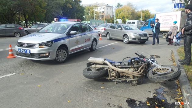 Серьёзная авария с участием мотоциклиста произошла днём во вторник в Екатеринбурге. Известно, что женщина на Skoda ехала по Степана Разина, после пересечения Фурманова она решила повернуть налево, пропустила встречные машины и приступила к манёвру. В этот момент в левую дверь машины на большой скорости врезался байкер. После столкновения мотоцикл отбросило в сторону на несколько метров. — По предварительным данным, он обгонял по встречной полосе. В итоге с переломом правой голени мотоциклиста доставили в 36-ю больницу, — рассказали об обстоятельствах аварии в отделении пропаганды ГИБДД Екатеринбурга. При этом ребёнок, который ехал в Skoda, не пострадал, так как находился в специальном кресле. Неделю назад мы писали ещё об одной аварии с участием мотоциклиста, которая произошла на первом километре Егоршинского подхода, недалеко от пересечения с Блюхера. Байкер получил перелом таза, а также травмы живота и головы. Момент аварии попал на запись регистратора. Если вы стали очевидцем аварии на Степана Разина, у вас есть видео момента столкновения, то присылайте его на нашу редакционную почту news@corp.e1.ru. Также можно воспользоваться WhatsApp, Viber, Telegram: +7 909 704 57 70.