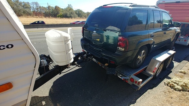 Сотрудники дорожно-патрульной службы полиции Калифорнии остановили на шоссе I-80 дом на колесах, который буксировал на прицепе Chevrolet Blazer с присоединенным к нему кемпером. Автомобиль двигался по дороге со скоростью около 50 километров в час и мешал проезду других машин. В своем Фейсбуке подразделение полиции сообщает, что владелец Chevrolet Blazer отправился в Сакраменто, но где-то в Неваде внедорожник сломался. Водитель попросит своего друга арендовать другой автомобиль и отбуксировать их до пункта назначения. Blazer, тянущий за собой кемпер, просто установили на трейлер, закрепив передние колеса тросом. По данным полиции, у водителя не было соответствующей лицензии на буксировку. Теперь ему, вероятно, грозит штраф.