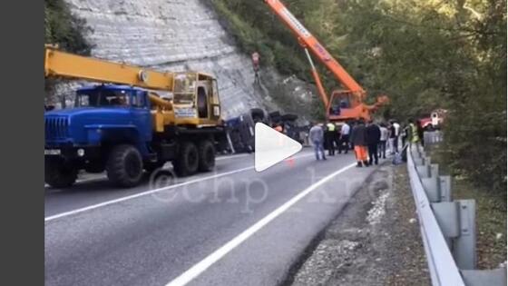 Грузовик с 22 тоннами битума перевернулся на черноморской трассе в Краснодарском крае, произошел розлив