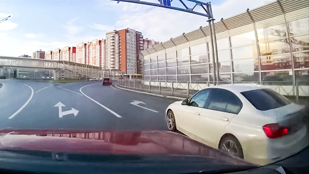 Скорость до добра не доводит, как известно. Столичный автолюбитель на видео неспешно едет в потоке машин и очень недоволен тем, что идущее впереди авто плетется слишком медленно. Дождавшись самого удобного момента - конечно, на повороте, - водитель дает газу и... вылетает с дороги, изрядно разбив подвеску об неровности разделительной полосы. Заодно испортив газон. Не исключено, что за рулем сидела женщина. По крайней мере, реплика мужчины "Поворот!" скорее адресована к тому, кто сидит за рулем, нежели к самому себе.