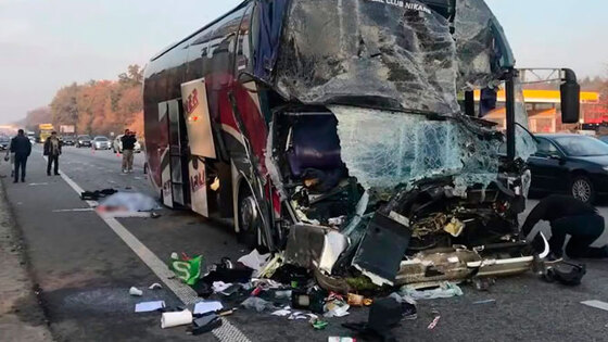 При аварии погибла артистка Марина Поплавская, четверо учатников коллектива получили серьезные ранения. В Сети появилось видео с места ДТП под Киевом, в которой погибла артистка юмористического шоу Марина Поплавская. На кадрах виден искореженный автобус и работающие на месте аварии сотрудники полиции и скорой помощи. Ранее стало известно, что автобус с актерами юмористического шоу столкнулся с грузовиком под Киевом. Поплавская, находившееся на переднем сиденье, после удара скончалась. При аварии также пострадали четверо участников коллектива, их состояние оценивается, как тяжелое.