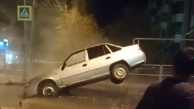 В Самаре на улице Мориса Тореза легковушка «нырнула» под асфальт