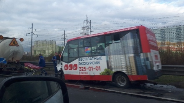 Маршрутка столкнулась с бензовозом на петербургской КАД