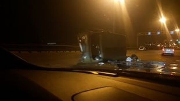 Ночью на КАД перевернулся УАЗ с двумя детьми
