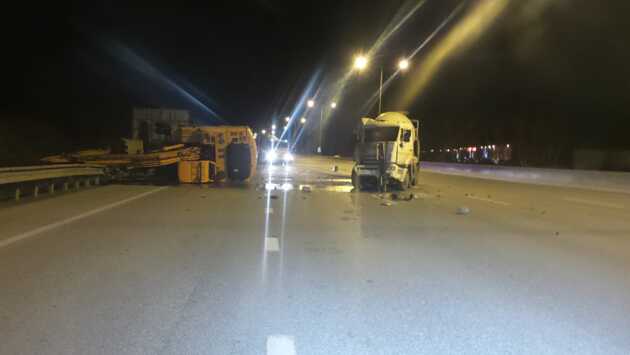 Сегодня около 02:40 на Кольцовском тракте сразу после МВЦ «Екатеринбург-Экспо» столкнулись экскаватор и бетоновоз. Как рассказали E1.RU проезжающие мимо водители, перевернувшийся на бок экскаватор упал на дорожное ограждение, а у бетоновоза марки КамАЗ серьёзно разбита кабина. Водитель КамАЗа не соблюдал дистанцию и врезался в экскаватор. Удар пришёлся на правую сторону автомобиля. Экскаватор и бетоновоз перегородили часть дороги, проехать можно только по одной полосе. По предварительным данным, никто из водителей в аварии не пострадал. Ещё одно ДТП с грузовым автомобилем произошло вечером 27 октября на Уралмаше, грузовик врезался в трамвай. В результате пострадали две пассажирки.