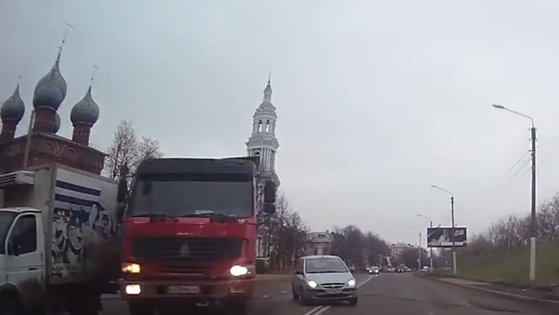 Участник аварии, произошедшей в минувший четверг, 1 ноября, на улице Нижняя Дебря в Костроме, опубликовал видео со своего регистратора, запечатлевшего момент столкновения. На записи видно, как женщина, находившаяся за рулем автомобиля Hyundai Getz, совершила резкий маневр, чтобы уклониться от грузовика, перестроившегося в ее ряд. Малолитражке удалось разминуться с самосвалом ценой выезда на полосу встречного движения, где в тот момент и находился автор видео на своем Volkswagen, через мгновение протаранивший Hyundai. В результате инцидента пострадал мужчина, управлявший автомобилем Volkswagen.