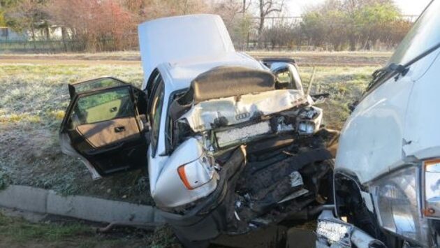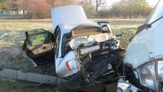 «Ауди» в гармошку: на трассе Курск-Орёл фургон «догнал» легковушку
