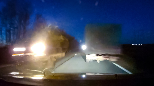От такого ролика идут мурашки по коже, ведь это, наверное, одна из самых страшных ситуаций, которая может приключиться с водителем. Автор едет по трассе ночью на скорости около 110-120 км/час. Скорость, возможно, высоковата для такой освещенности и узкой дороги, однако ничего криминального - многие из нас ехали бы так же. В какой-то момент свет фар выхватывает из темноты припаркованную на обочине фуру, которая наполовину вылезает за пределы разметки на проезжую часть. Автор, разумеется, не успевает ничего сделать - он лишь чуть-чуть смещается влево, но все равно происходит мощнейший удар. В большинстве таких аварий пассажиры и водитель авто погибают или получают сильнейшие травмы. Мы очень надеемся, что все остались живы, хотя бы потому, что видео было опубликовано в сети. Однако владелец фуры - фактически убийца.