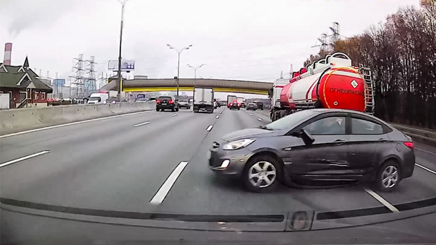 Ох уж эти любители игры в шашки на дороге. Если бы хотя бы каждый третий из них умел ездить и владел бы своим автомобилем, то аварий было бы куда меньше. Но увы. Этот автолюбитель, судя по его манере езды, не столько торопился, сколько петлял между рядами на МКАД для собственного удовольствия. В какой-то момент он допустил серьезный просчет - перестроился в крайний правый ряд, чтобы из него уйти обратно влево. Но не ушел: из правого ряда, как известно, люди часто сворачивают на съезды. Один из таких водителей и попался на пути шашечника. Самое забавное, что едва не досталось и автору видео: после столкновения глупого лихача понесло в поток машин и владелец регистратора едва не въехал в нарушителя. Вот это было бы совсем обидно.