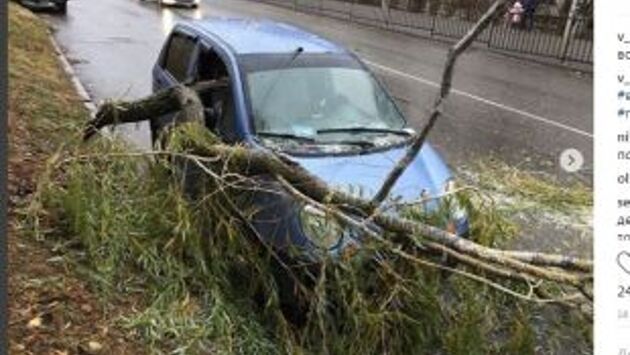 В Железноводске огромная ветка придавила небольшой автомобиль