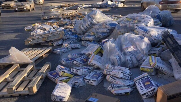 Вчера, 13 ноября, на исходе дня движение по улице Орджоникидзе было почти парализовано. Дело в том, что из проезжающей фуры выпало пара десятков мешков, набитых сухим клеем для укладки плитки. У машины прорвалась боковая стенка кузова и мешки ссыпались на асфальт. Непроизвольная самовыгрузка грузовой фуры произошла в районе ресторана "Макдоналдс". Выпавшие мешки завалили дорогу и приостановили движение автотранспорта. По сообщениям очевидцев и сотрудников ДПС, никто не пострадал.
