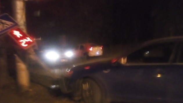 Вечером 15 ноября на пересечении улиц Никитина и Степана Разина Аudi вылетел на тротуар и врезался в пешеходный светофор. Светофор накренился, но устоял, не утратив при этом работоспособности. Фото П.Стоцкого Как сообщают очевидцы в группе «Калуга Жесть», авария произошла из-за того, что эту машину подрезал Renault Logan. В этот момент на пешеходном переходе были люди. Поэтому другого выхода у водителя Аudi просто не осталось. По предварительным данным, люди не пострадали.