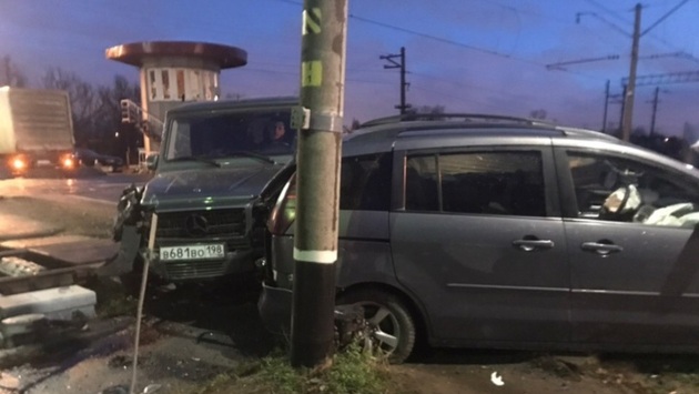 Утром в воскресенье, 18 ноября, водитель автомобиля Mercedes Geländewagen врезался в грузовик и минивэн Mazda, находившиеся на железнодорожном переезде в районе поселка Александровская в Пушкинском районе Санкт-Петербурга. На записи, сделанной регистратором, установленном в протараненной машине, видно, что автор ролика неспешно пересекал пути. В этот момент в него влетело другое транспортное средство. После удара, авто, из которого велась съемка, отбросило вперед и оно снесло ограждения и едва не сбило пешехода, успевшего своевременно отскочить в сторону. Очевидцы утверждают, что в результате ДТП пострадали два человека. Кроме того, по их словам, предполагаемый виновник аварии, находившийся за рулем внедорожника, вел себя неадекватно и у присутствовавших возникло впечатление, что он мог находиться в состоянии опьянения, однако официального подтверждения этой информации пока не поступало.