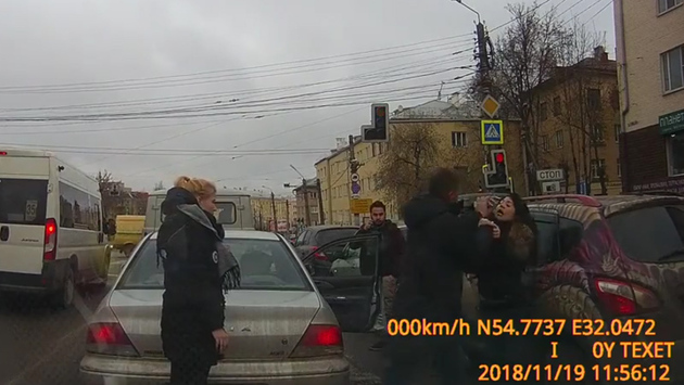 По словам очевидцев, девушке не понравилось, что на ее автомобиль направили камеру мобильного телефона, и, после непродолжительного обмена "любезностями", напала на мужчину. Согласно другой версии, агрессивная жительница Смоленска решила, что водитель легковушки, пассажира которой она ударила, якобы ее подрезала.