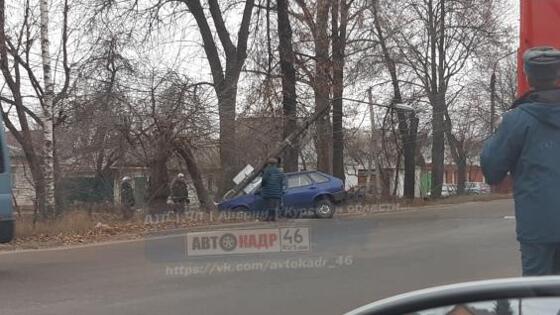 Обстоятельства и причины данного дорожно-транспортного происшествия пока ещё уточняются. На данный момент известно, что пожилой водитель «ВАЗ-2108» не справился с управлением и допустил съезд с дороги. В результате этого автомобиль врезался в столб световой опоры, который упал на переднюю часть «железного коня». Как свидетельствуют очевидцы, пожилой водитель и его пассажирка, также женщина преклонного возраста, серьёзно не пострадали. Сейчас на месте ДТП разбираются все специальные службы. фото автокадр46