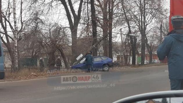 В Курске на улице Ильича «ВАЗ» снёс очередной столб