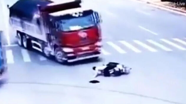 Дваждый избежавший смерти за две секунды мужчина попал на видео