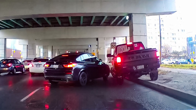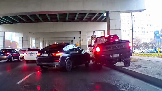Невежливый водитель BMW влез перед пикапом - и это было плохой идеей