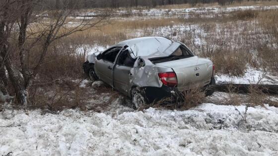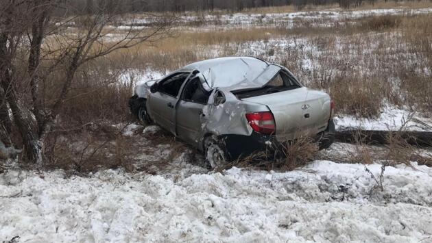 "Гранта" вылетела с дороги в Самарской области и перевернулась