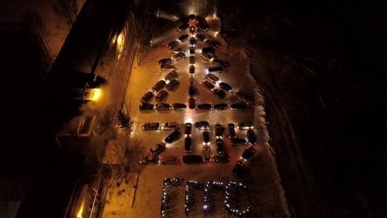 Автомобилисты из Глазова выстроились в новогоднюю ель