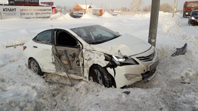 Hyundai влетел в грузовик на трассе под Новосибирском: один человек пострадал