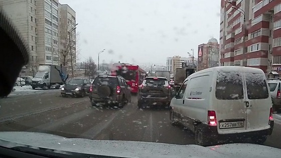 Переломом позвоночника закончилась для 37-летнего жителя Казани попытка сократить путь — он попал под колеса автомобиля. Камера регистратора зафиксировала момент ДТП. Авария произошла около половины второго в пятницу, 21 декабря, на улице Академика Губкина. Мужчина, как видно на кадрах, выскочил на встречную полосу из-за стоявшего в пробке красного автобуса, так что водитель Nissan не успел отреагировать и остановиться. От удара перебегавшего дорогу в неположенном месте пешехода подбросило в воздух. Самостоятельно подняться на ноги он не смог. Уже в больнице врачи диагностировали у пострадавшего перелом одного из позвонков.