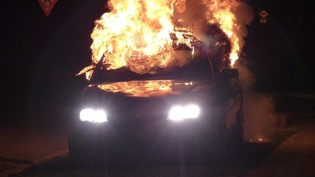 На записи видны очертания транспортных средств, охваченных огнем.