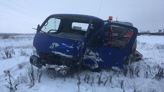 Три человека попали в реанимацию после столкновения легковушки с эвакуатором на трассе в Самарской области