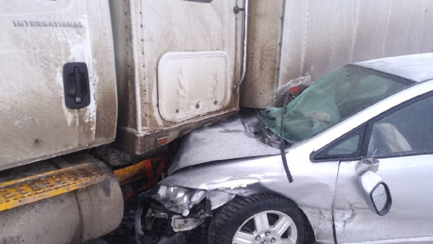 Авария произошла около трёх часов дня. Chevrolet при повороте налево не пропустила лёгковую Honda. От удара Honda въехала в припаркованный на обочине грузовик.