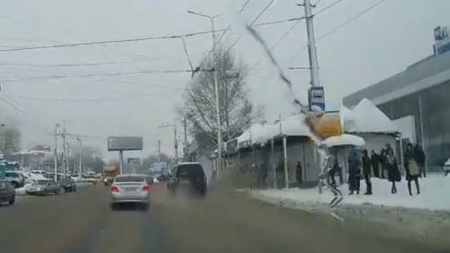 В Саратове водитель иномарки окатил из лужи людей на остановке