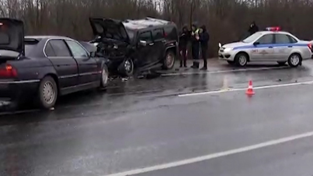 Сотрудники Госавтоинспекции получили сообщение, что сегодня около девяти утра два автомобиля столкнулись практически лоб в лоб. Судя по всему, одной из причин стала скользкая трасса. Машины получили серьёзные повреждения. Есть пострадавшие. В обеих машинах вместе с водителями ехало по одному пассажиру. Все четверо госпитализированы. Правоохранители выясняют обстоятельства происшествия. Евгений Кундалёв, инспектор ДПС ГИБДД: — По предварительным данным, водитель автомобиля «БМВ» не справился с управлением и допустил столкновение с автомобилем «Хаммер».