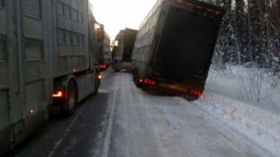 В Красноярском крае на трассе в кювете застряла фура с животными из Дании