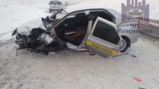 Такси с пассажирами в Красноярске попал в страшное ДТП