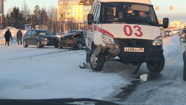 На перекрёстке в центре Ноябрьска машина «скорой» попала в ДТП.ФОТО