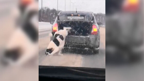 Алабай сбежал от нерадивого хозяина из движущейся машины: видео