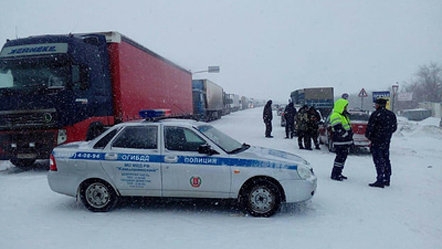 ВОЛГОГРАД, 24 января. /ТАСС/. Снегопад с низовой метелью на федеральной трассе Р-228 Сызрань - Саратов - Волгоград стал причиной остановки в районе города Камышина в 200 км от Волгограда порядка 25 большегрузов, сообщили ТАСС в пресс-службе ФКУ Упрдор "Каспий" Москва - Волгоград (структурное подразделение Росавтодора). Ранее в четверг в пресс-службе ГУ МВД по Волгоградской области сообщали, что движение для грузовиков и автобусов на этой трассе, а также на федеральной дороге Москва - Волгоград в Михайловском районе ограничено из-за сильного снегопада и метели. "На саратовской трассе в районе Камышина из-за непогоды не могут проехать порядка 25 большегрузов, на московской трассе заторов из грузовиков нет, но движение идет медленно из-за из-за снегопада и метели", - сказала представитель Упрдор Москва - Волгоград. Она уточнила, что всего в расчистке от снега федеральных трасс в волгоградском регионе задействовано 100 единиц дорожной техники, из них 49 единиц на московской трассе в районе города Михайловка, 26 машин и механизмов - на саратовской трассе в районе Камышина, остальная техника - на других проблемных участках. Замначальника руководителя пресс-службы областного главка МВД Антон Корнаухов отметил в беседе с ТАСС, что "на проблемных участках двух трасс застрявших в дороге междугородних автобусов нет". "Помощь водителям большегрузов оказывают полицейские, в том числе направленные в районы со сложной дорожной обстановкой дополнительные экипажи ДПС. Полицейские согревают водителей и пассажиров грузовиков горячим чаем, организован подвоз ГСМ, всем желающим предлагается остановиться на ночь в гостиницах города Камышина и Михайловки", - уточнил Корнаухов. Сейчас на территории большинства районов Волгоградской области снегопад становится менее интенсивным, наблюдается низовая метель, гололед, температура воздуха от плюс 1 до минус 2 градусов.