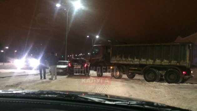 В ночь на 27 января на улице Фомушина в Калуге произошло ДТП с участием трех автомобилей. Аварию спровоцировал водитель самосвала Scania. Выезжая на эту улицу из микрорайона Кошелев, он не пропустил легковушку и врезался в нее, отбросив на другую легковую машину. По предварительным данным, люди не пострадали. Фото группы "Калуга Инцидент" "ВКонтакте"