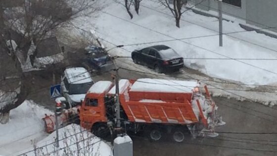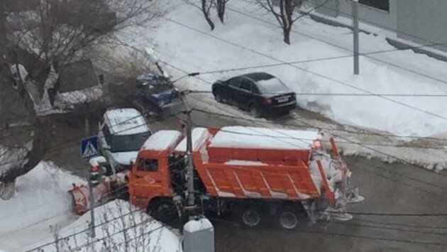 Потоп на Новоузнеской. Заскользивший снегоуборщик протаранил иномарку