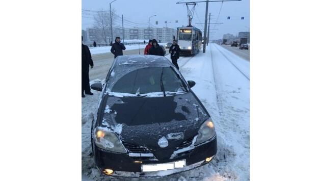 Легковушку вынесло на трамвайные пути в Череповце