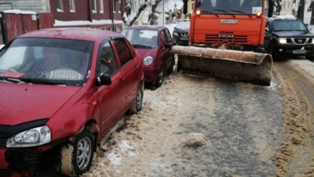 Два помятых авто – итог расчистки дороги на улице Долматова, сообщает K1NEWS.RU. Инцидент во время расчистки улицы от снега произошёл накануне. Улица Долматова в Костроме хоть и не главная, но достаточно оживлённая. Здесь находится Свердловский суд, торгово-экономический колледж и масса небольших офисных зданий. Именно поэтому, все обочины вдоль дороги в рабочие часы заставлены машинами. Мы здесь недалеко учимся. Вышли из техникума и увидели, что огромная снегоуборочная машина перегородила всю дорогу. Только потом заметили, что КАМАЗ стоит на аварийке, а рядом на обочине две помятые машины. У одной даже бампер был вырван, - рассказали нам очевидцы ЧП. Действительно, вчера днём спецтехника дорожного хозяйства чистила дорогу по улице Долматова. Проезд был затруднён. Водитель снегоуборочной машины не справился с управлением и задел несколько припаркованных на дороге автомобилей. В этом году у нас такое первый раз случилось. Дорога там очень узкая, трудно чистить. Теперь все вопросы будем решать через страховые компании. Водитель спецмашины так же будет наказан за нарушение ПДД в дисциплинарном порядке. Но, хотелось бы, чтобы и костромичи понимали, что нам необходимо работать и чистить город. Иногда это сделать очень сложно из-за машин. И днём и ночью, - пояснил главный механик МКУ «Дорожное хозяйство» Дмитрий Смирнов. Какой была реакция владельцев помятых авто нам неизвестно. Судя по повреждениям на машинах, которые видны невооружённым взглядом, ремонт им обойдётся недёшево.