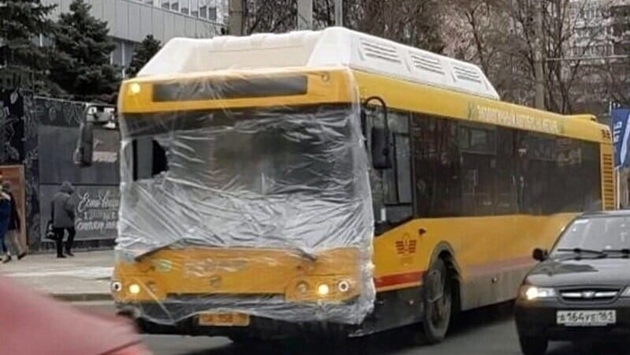 Я у мамы инженер. В Ростове-на-Дону курсирует автобус с пленкой вместо лобового стекла