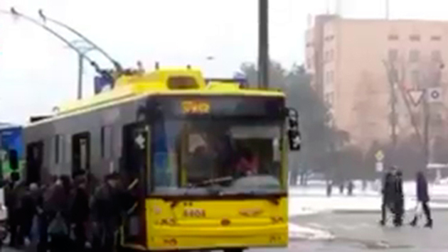 В Киеве пассажирам сломавшегося троллейбуса пришлось толкать его до остановки: видео