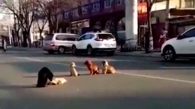 Видимо, животные перебегали дорогу – четыре собаки успели это сделать, а пятая попала под колеса. Небольшая стая бездомных собак перекрыла проезжую часть в китайском Ланьчжоу после того, как машина сбила одну из дворняг. Видимо, животные перебегали дорогу – четыре собаки успели это сделать, а пятая попала под колеса. Собаки окружили погибшего пса, а после выстроились в линию и стали охранять животное. По данным соцсети Weibo, они разошлись, когда кто-то отодвинул мертвое тело в сторону. «Если бы только люди могли быть больше похожи на этих собак», - написал один из пользователей.