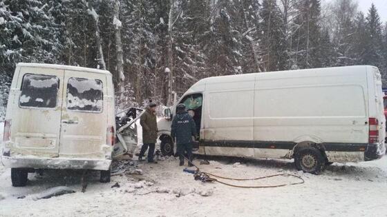 В результате столкновения двух встречных грузовых автомобилей на трассе Киров – Советск погиб один человек и трое получили травмы. Сегодня 7 февраля около 13 часов на 82 км автодороги Киров – Советск (поворот на пгт. Верхошижемье) произошло столкновение двух грузовых фургонов: «Мерседес Бенц Спринтер» и «Мерседес Бенц». По предварительным данным, водитель автомобиля «Мерседес Бенц», который двигался в сторону города Кирова, выехал на полосу встречного движения и совершил столкновение со встречным автомобилем «Мерседес Бенц Спринтер». «В результате происшествия пассажир автомобиля «Мерседес Бенц» погиб на месте ДТП, оба водителя и пассажир автомобиля «Мерседес Бенц Спринтер» получили травмы и были госпитализированы», – сообщили в УМВД по Кировской области. На месте аварии работают сотрудники полиции. По факту ДТП проводится проверка, данные и обстоятельства происшествия устанавливаются. Фото – УГИБДД по Кировской области